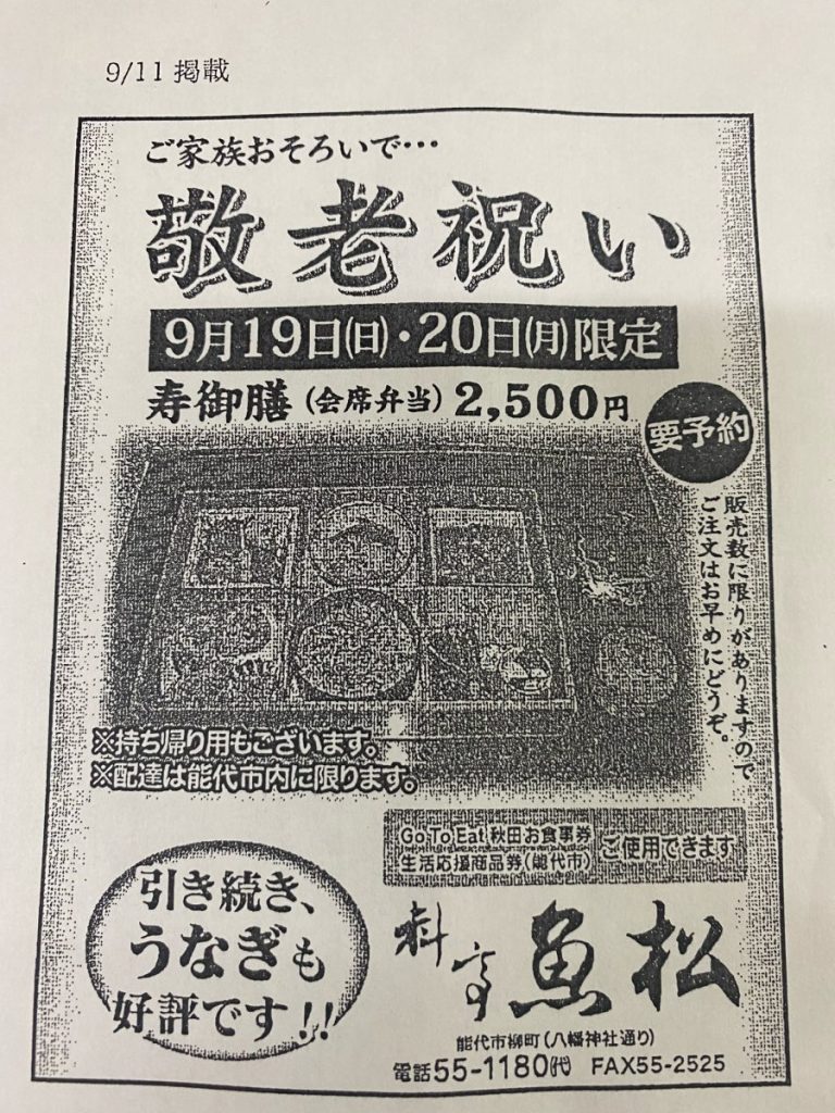 ※9月11日北羽新報にて掲載いたしました。